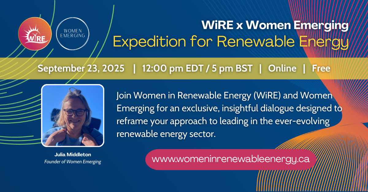 Join Women in Renewable Energy (WiRE) and Women Emerging for an exclusive, insightful dialogue designed to reframe your approach to leading in the ever-evolving renewable energy sector.